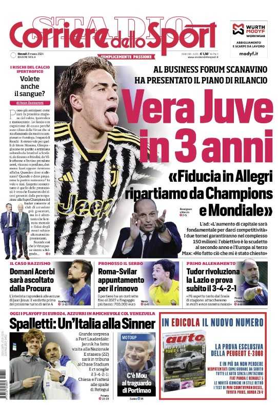 Tidino oggi la prima pagina del Corriere parla di tre anni per tornare a competere in Italia parole di Scanavino.